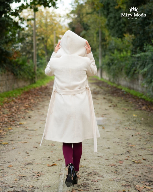 Cappottino Vestaglia con Cappuccio in Tessuto Lavorato