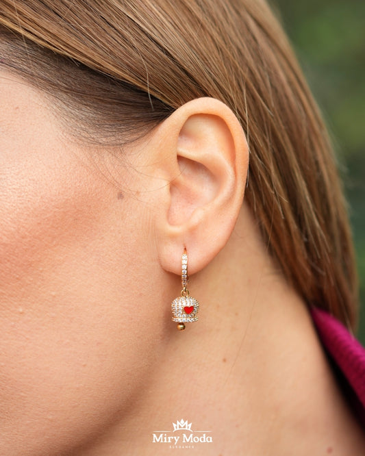 Set Campanelle Porta Fortuna Gold con Strass e Cuoricini Rossi