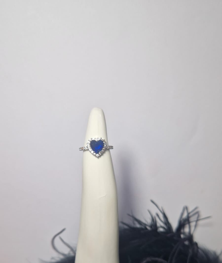 Anello Cuore Blu presenta una pietra centrale blu in rilievo a forma di cuore ,
