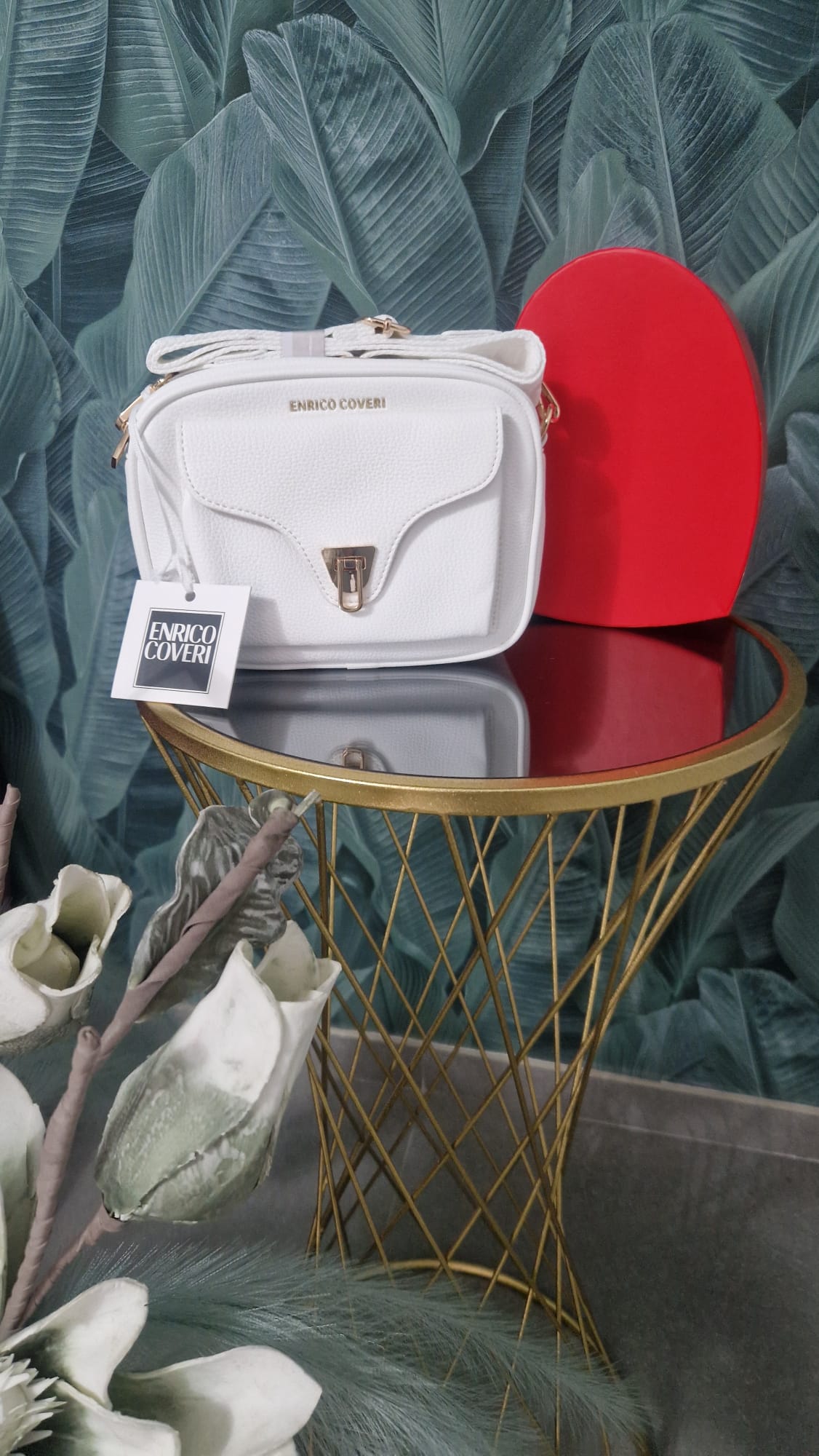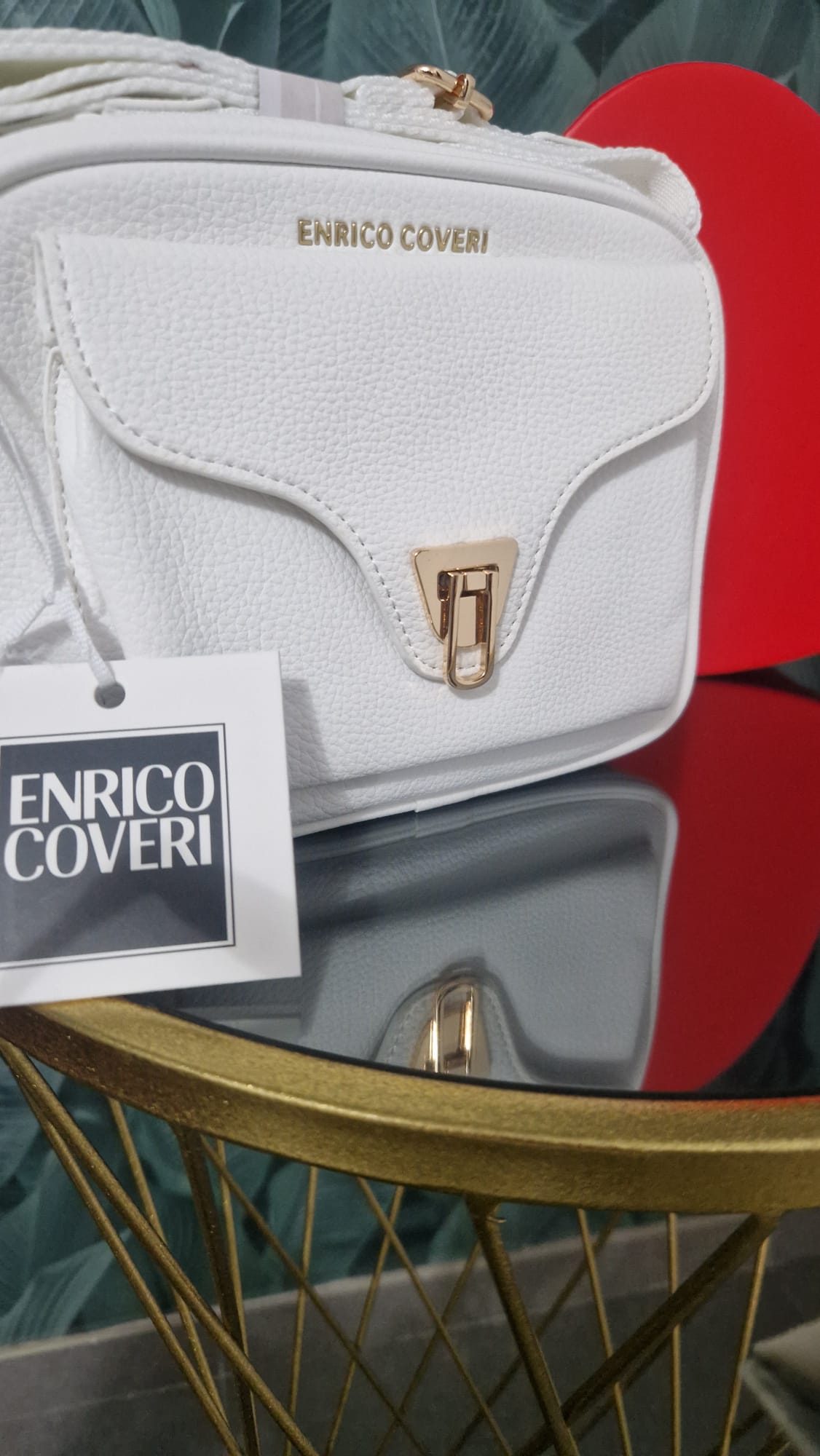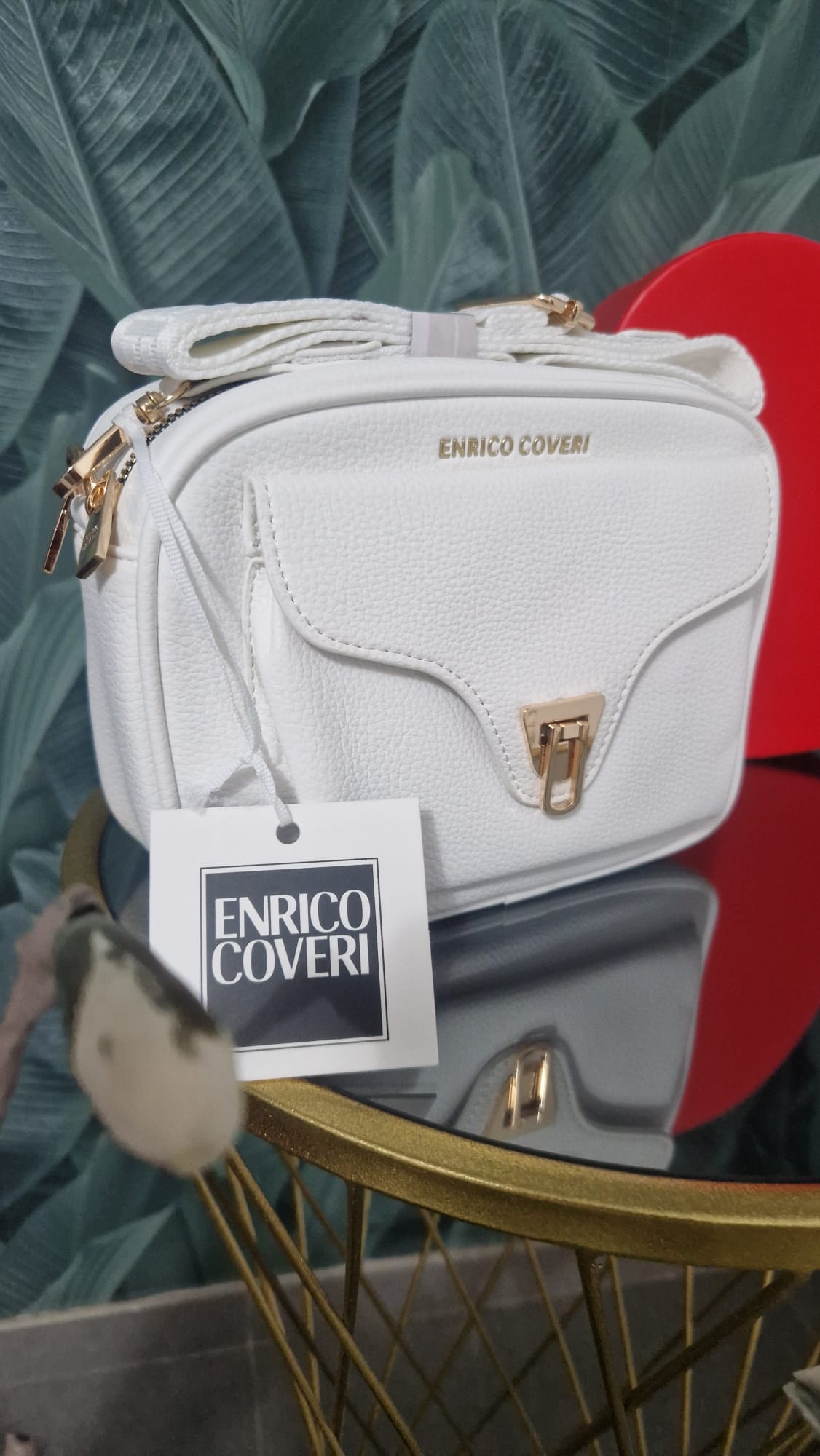 Borsa Enrico Coveri colore bianco modello 2 cerniere con tasca esterna pratica e comodaq x tutti i giorni completa di tracolla regolabile .