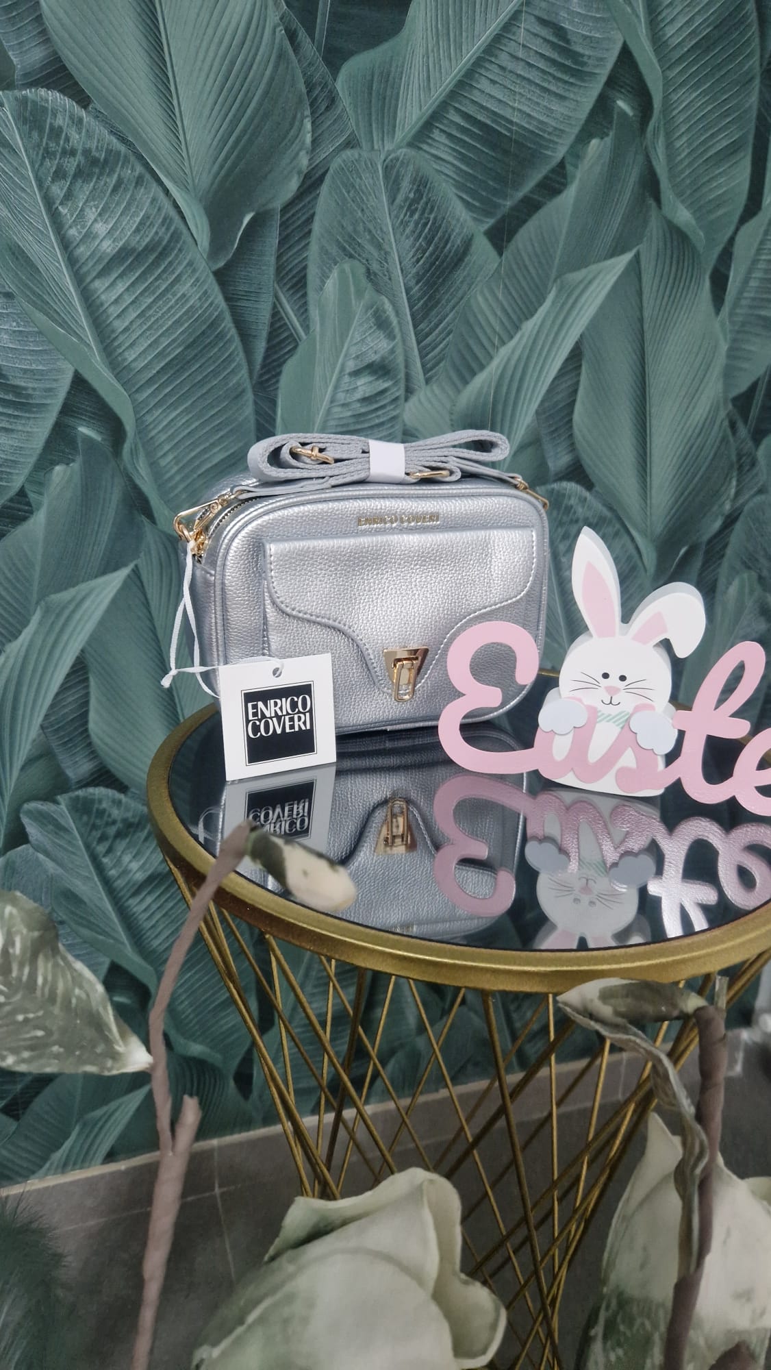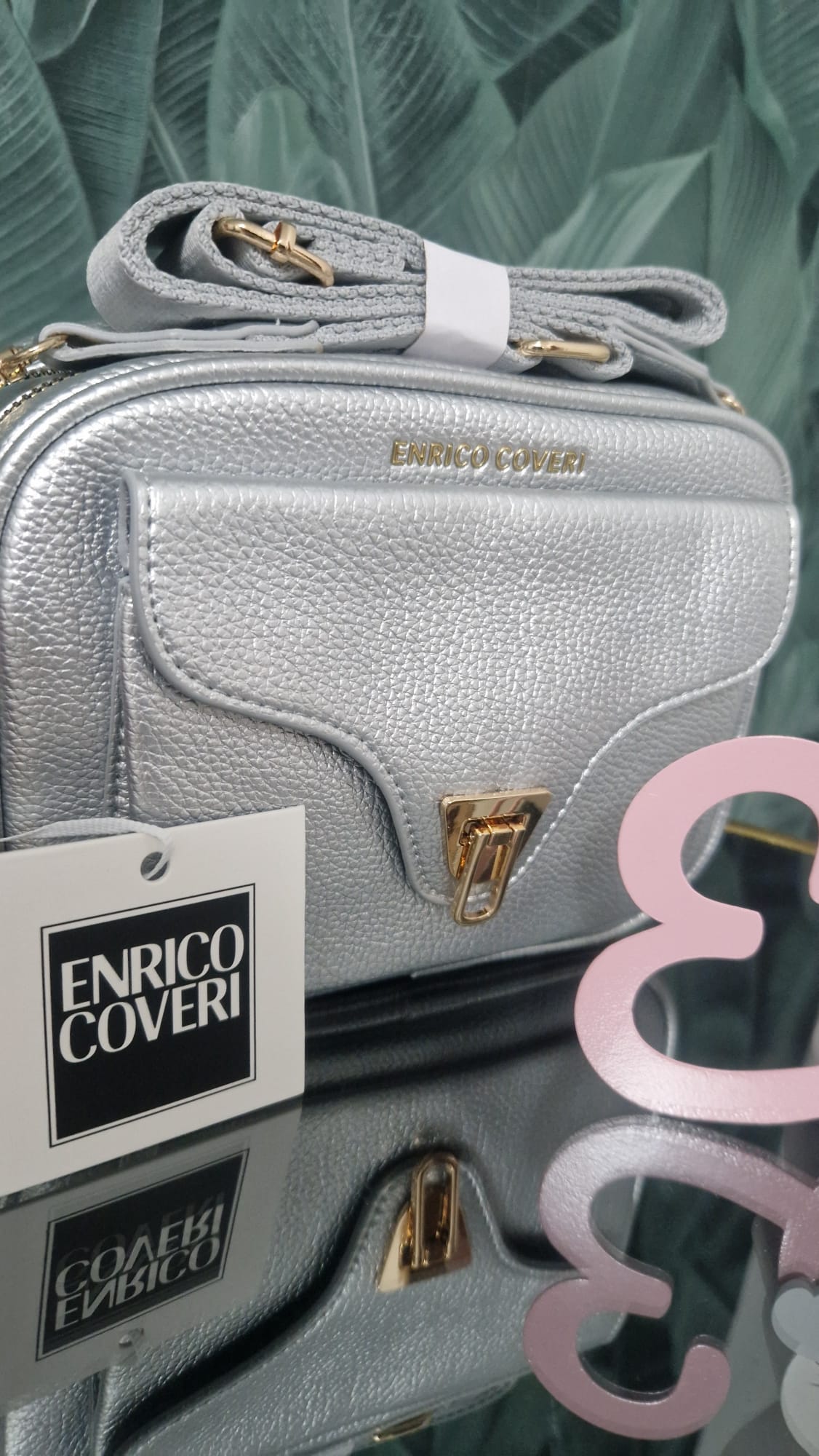 Borsa Enrico Coveri colore Silver modello 2 cerniere con tasca esterna completa di tracolla regolabile .