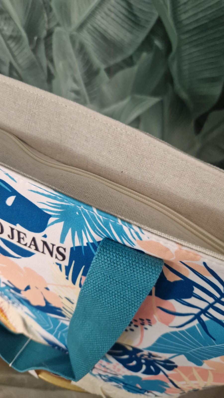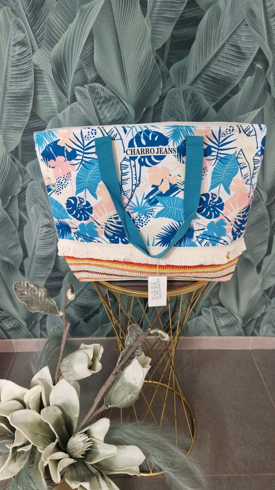 Borsa mare Charro colore turchese con fantasia foglie manico a spalla
