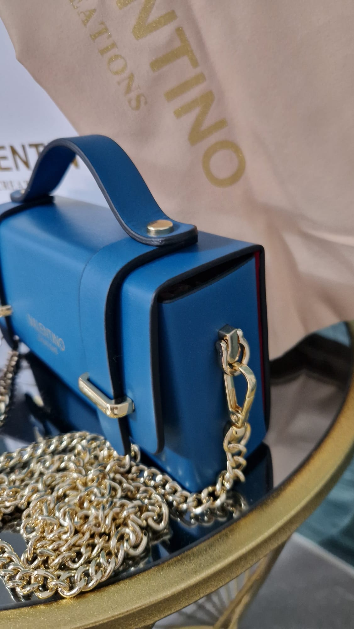 Borsa Valentino Creations colore blu marino con catenella in oro