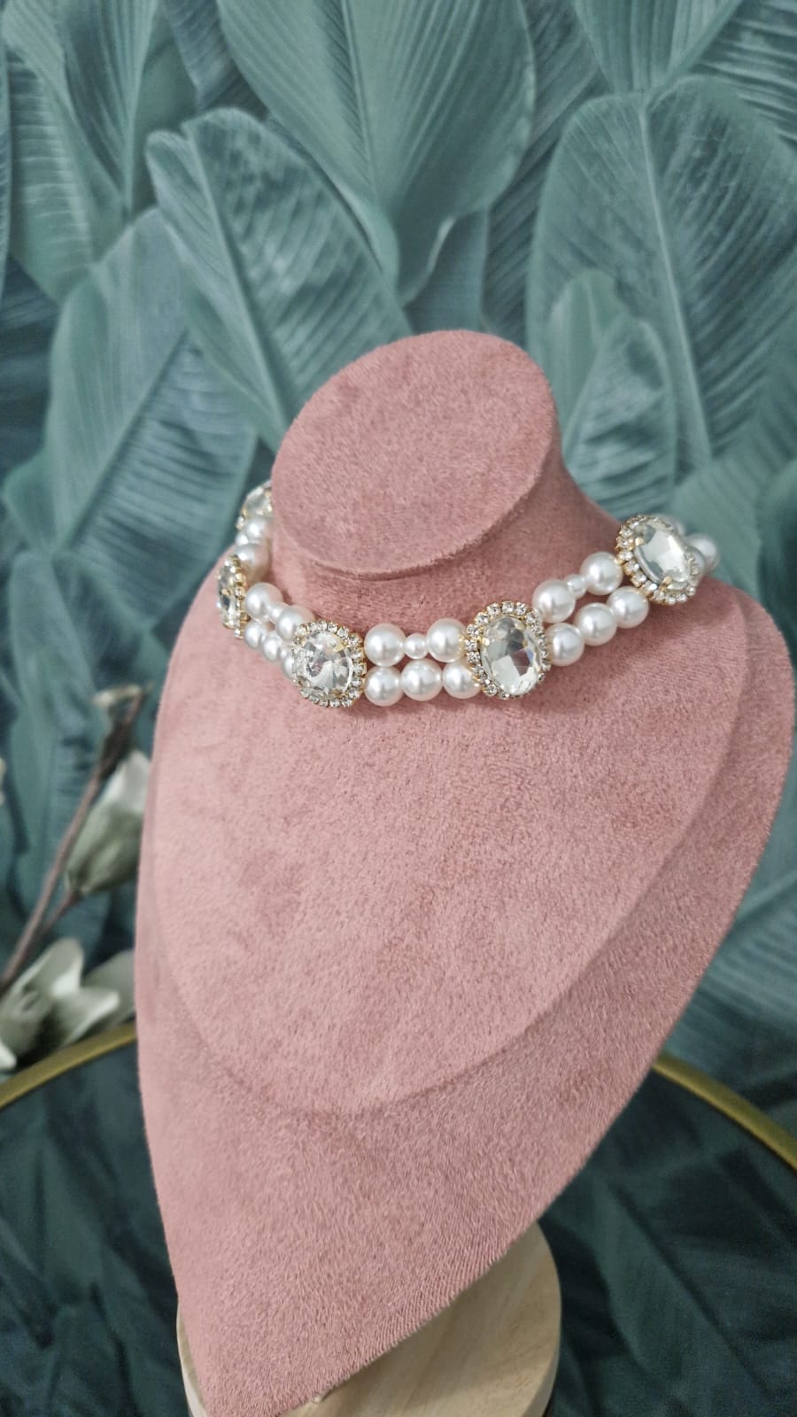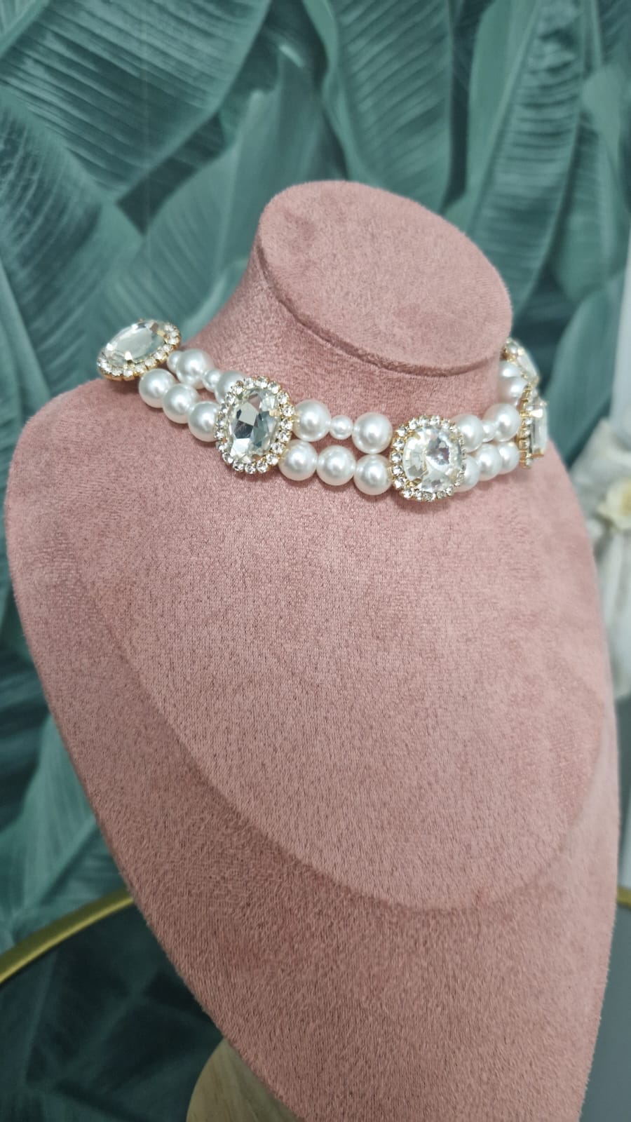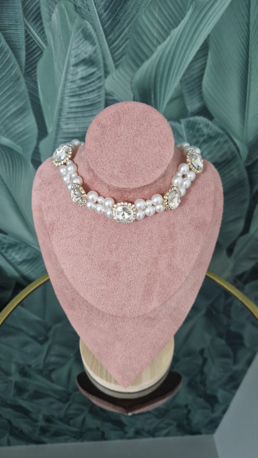 Girocollo con Perle bianche e Pietre in vetro Crystal .