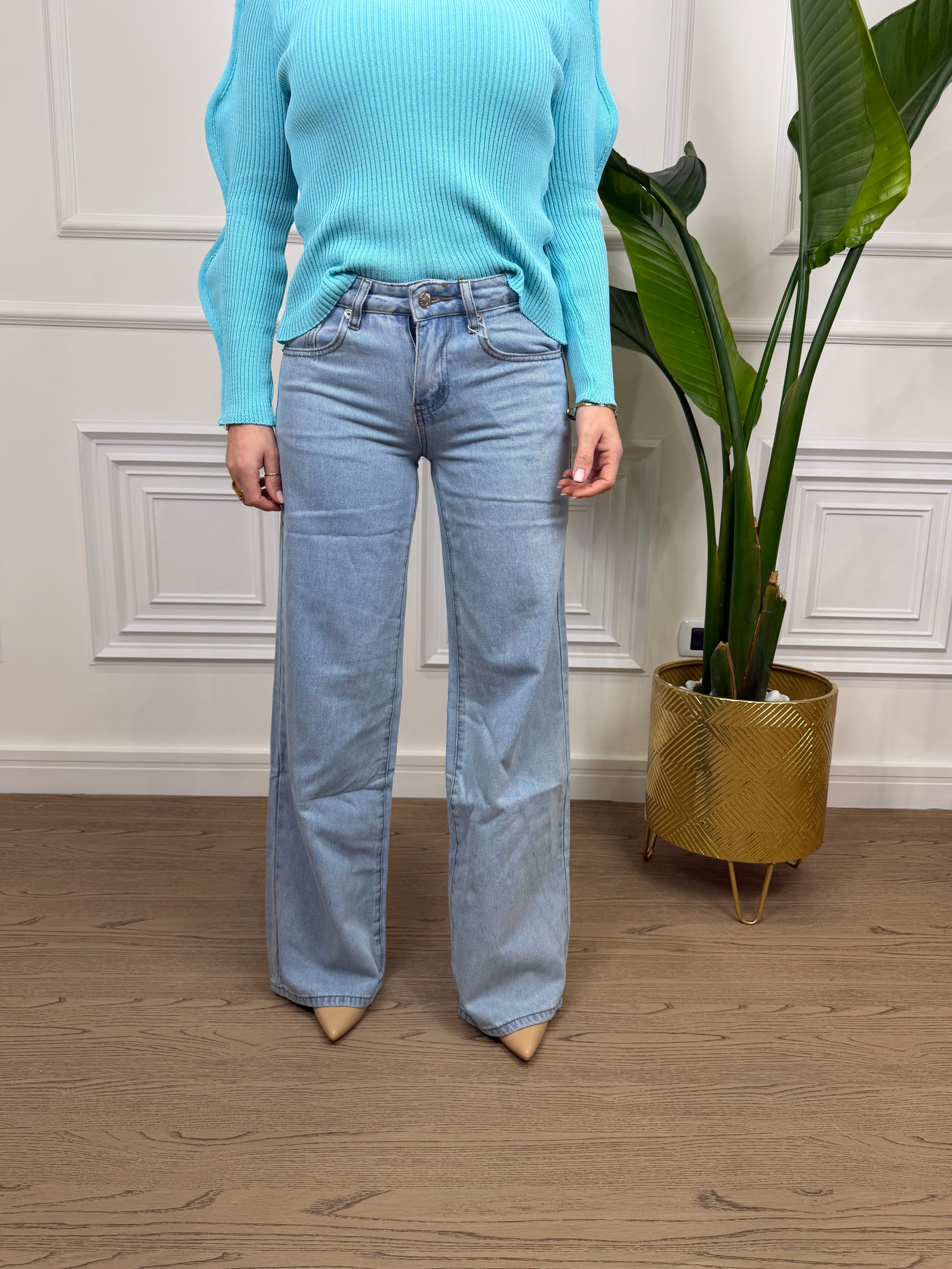 Jeans a gamba dritta lavaggio chiaro sono caratterizzati da una linea dritta che scende dalla coscia alla caviglia senza stringere, offrono una vestibilità classica e versatile.