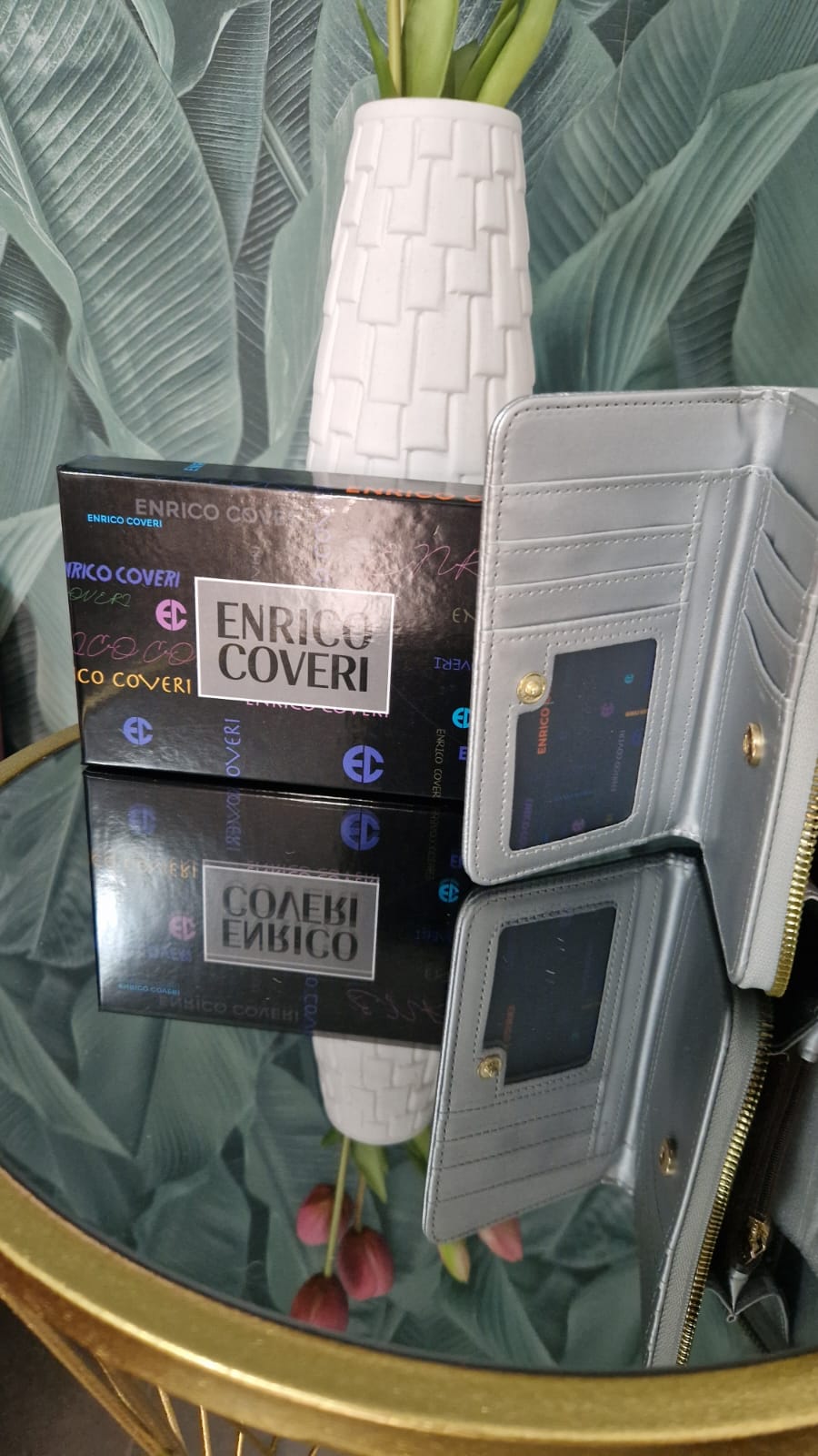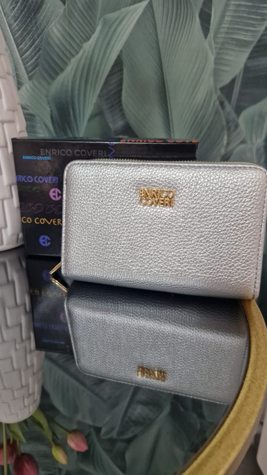 Portafoglio Enrico Coveri colore Silver con cerniera e clip di chiusura .
