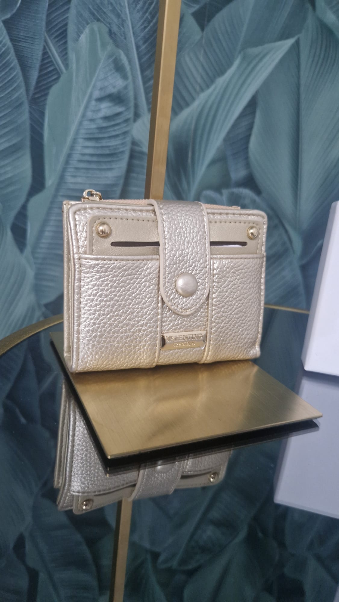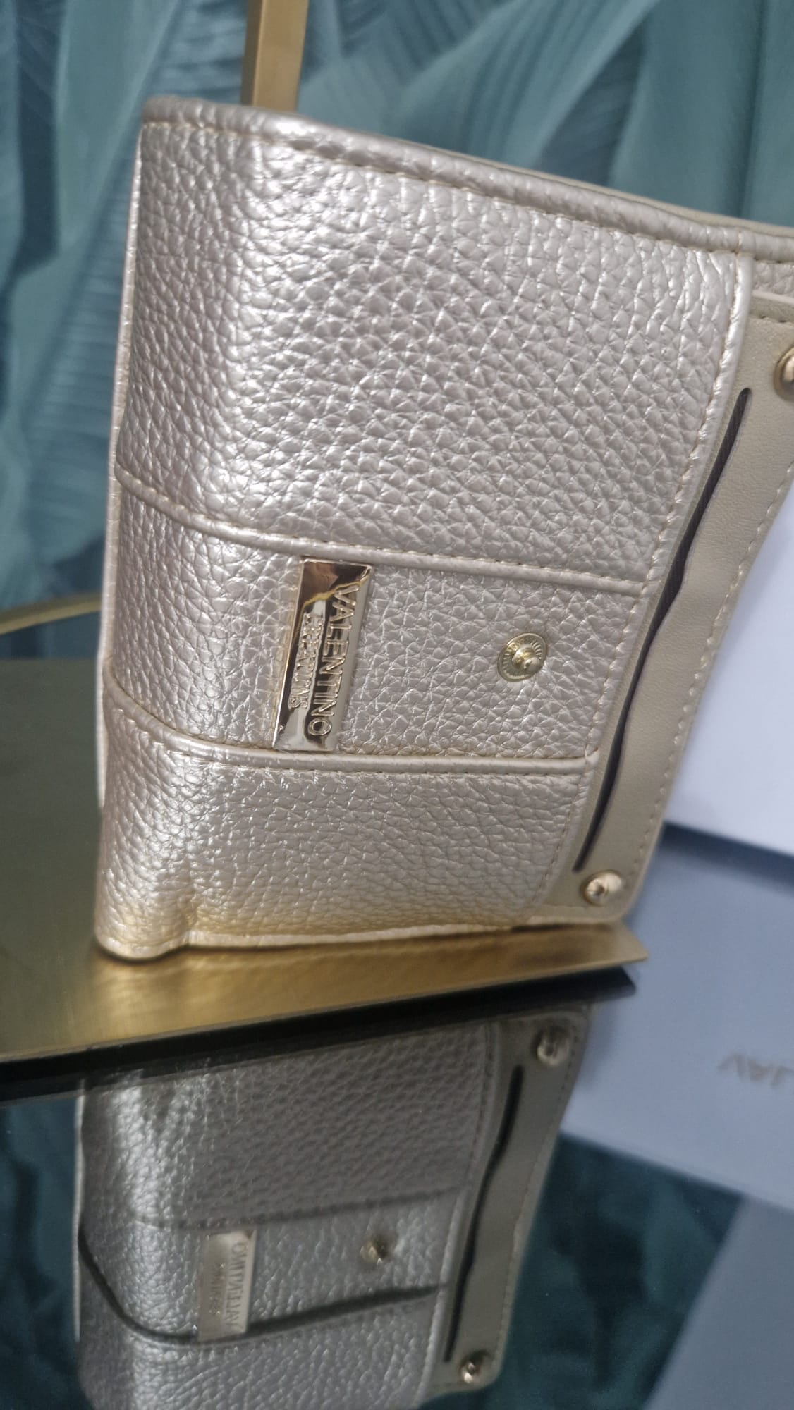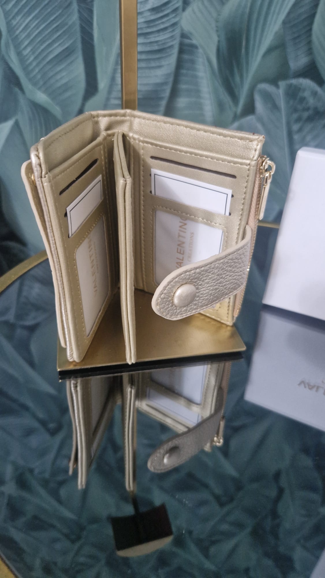 Portafoglio Valentino Creations donna colore oro con chiusura bottone .