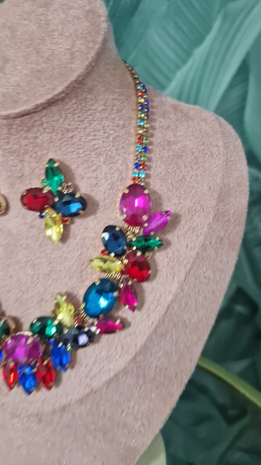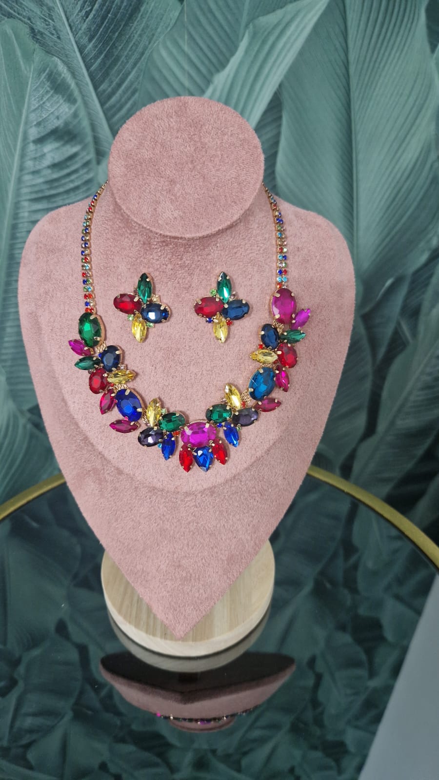 Collana con Orecchini con pietra multicolor con struttura oro.