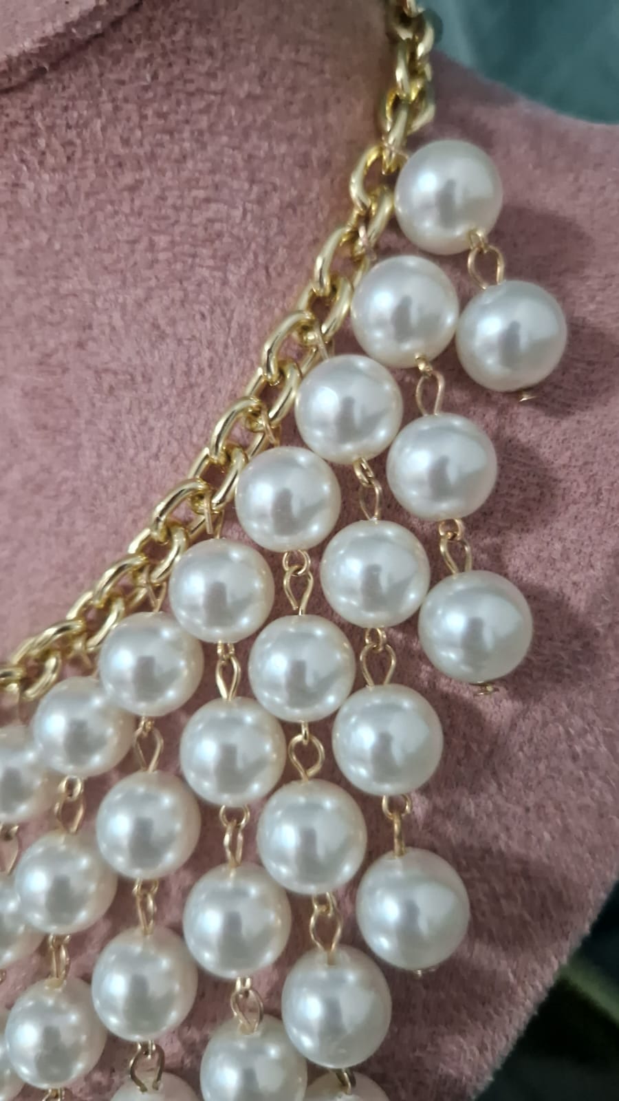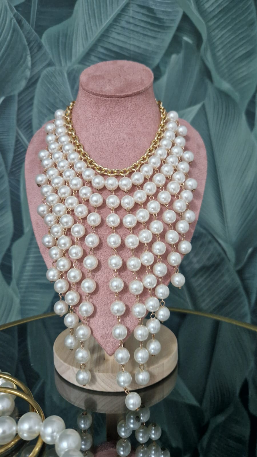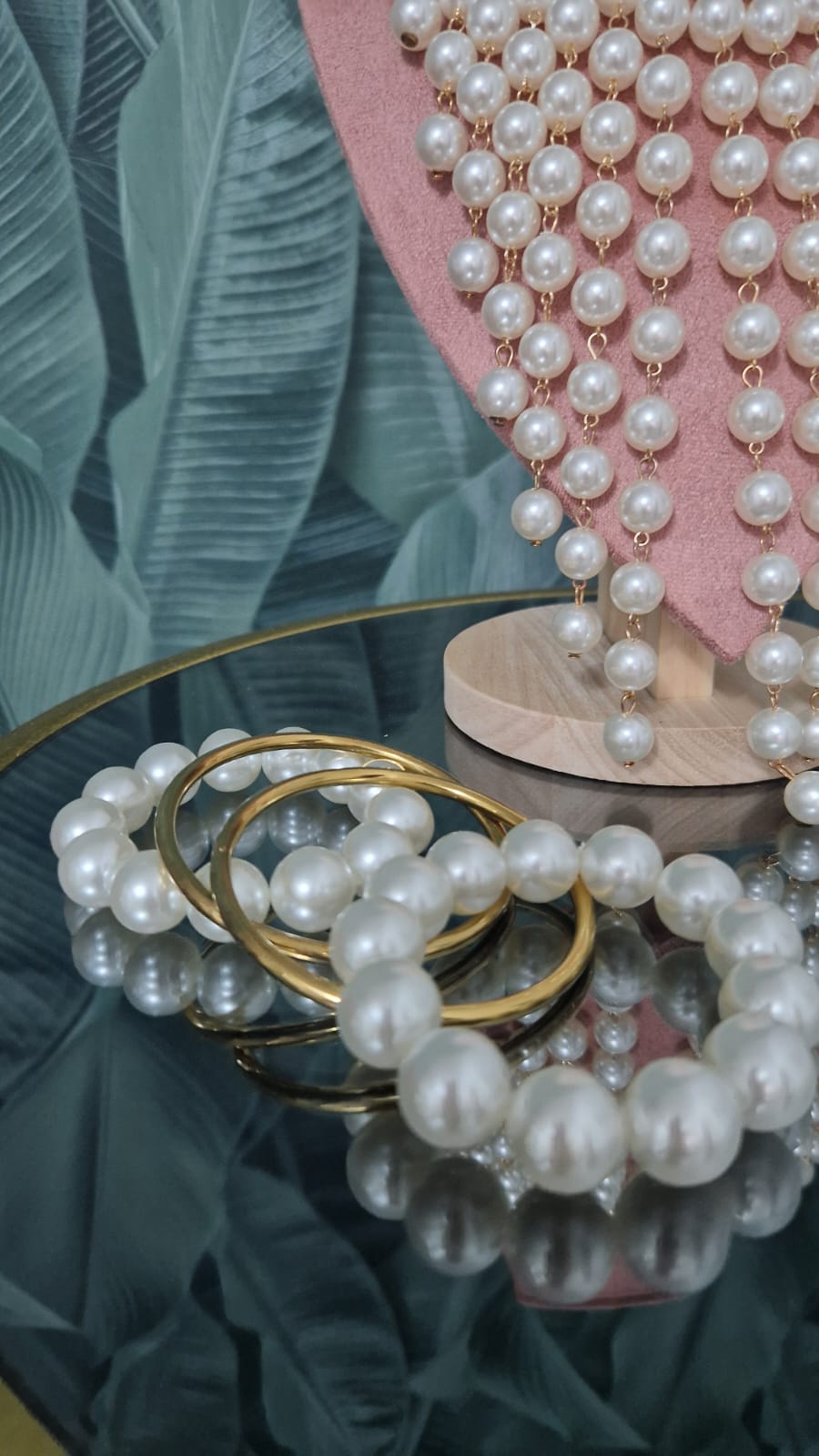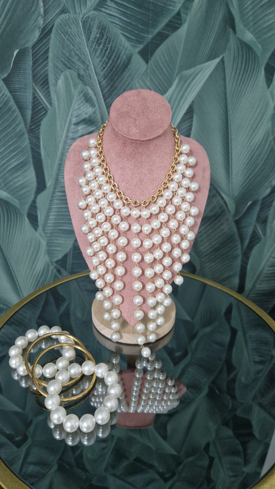 Collana Noemi a piu fili di Perle lunga con bracciali abbinati.