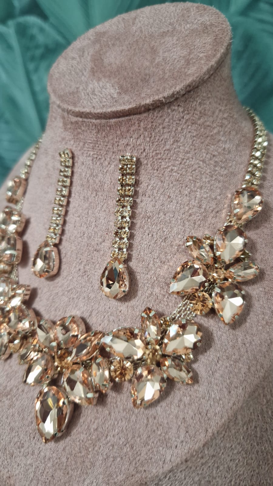 Pietre in vetro e strass colore Ambra struttura in colore oro.