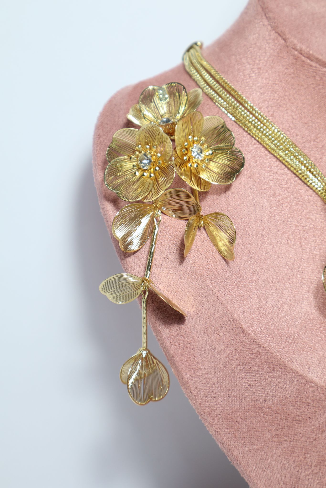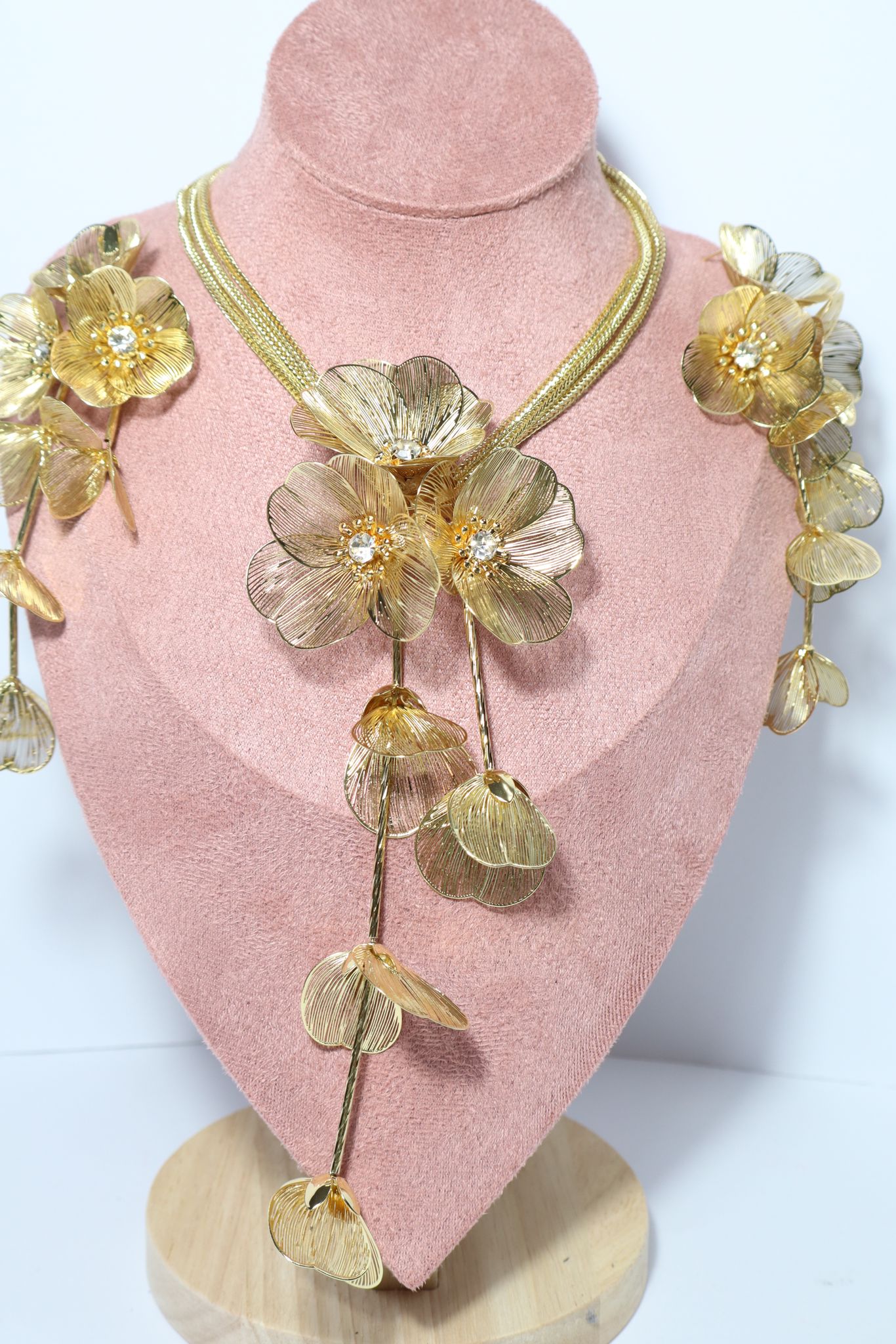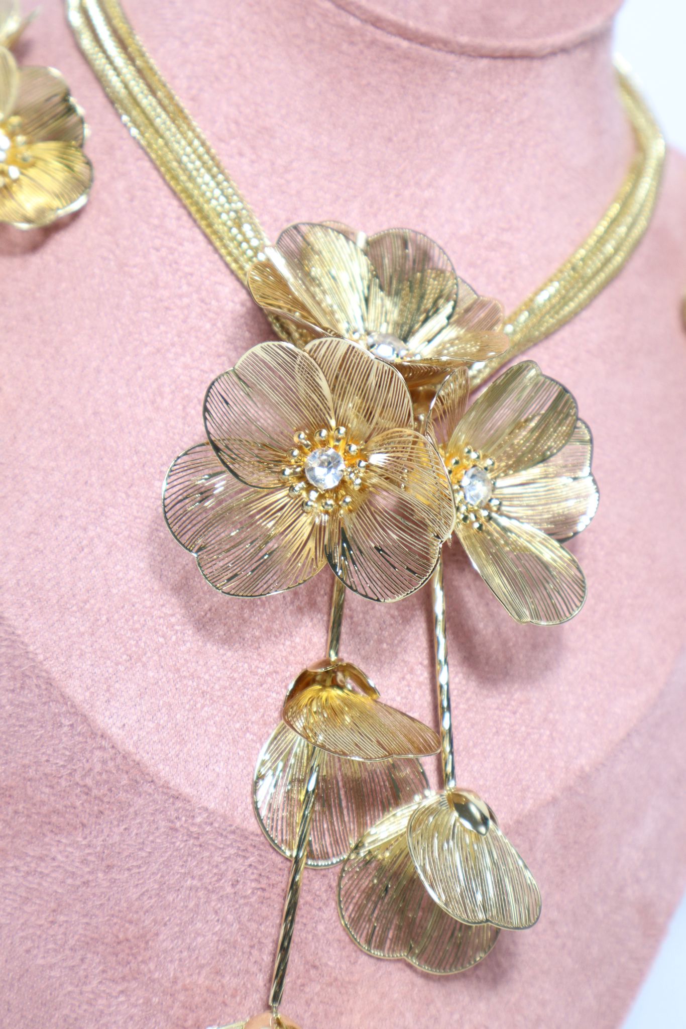 Un Incantevole set tema fiori con punto luce, montatura Gold , con orecchini abbinati .